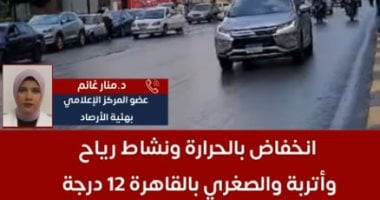 ولفتت هيئة الأرصاد الجوية، إلى أن العظمى على القاهرة تنخفض بمعدل درجتين عن أمس لتسجل اليوم 22 درجة ، بينما تنخفض الصغري بالقاهرة ل 12 درجة.